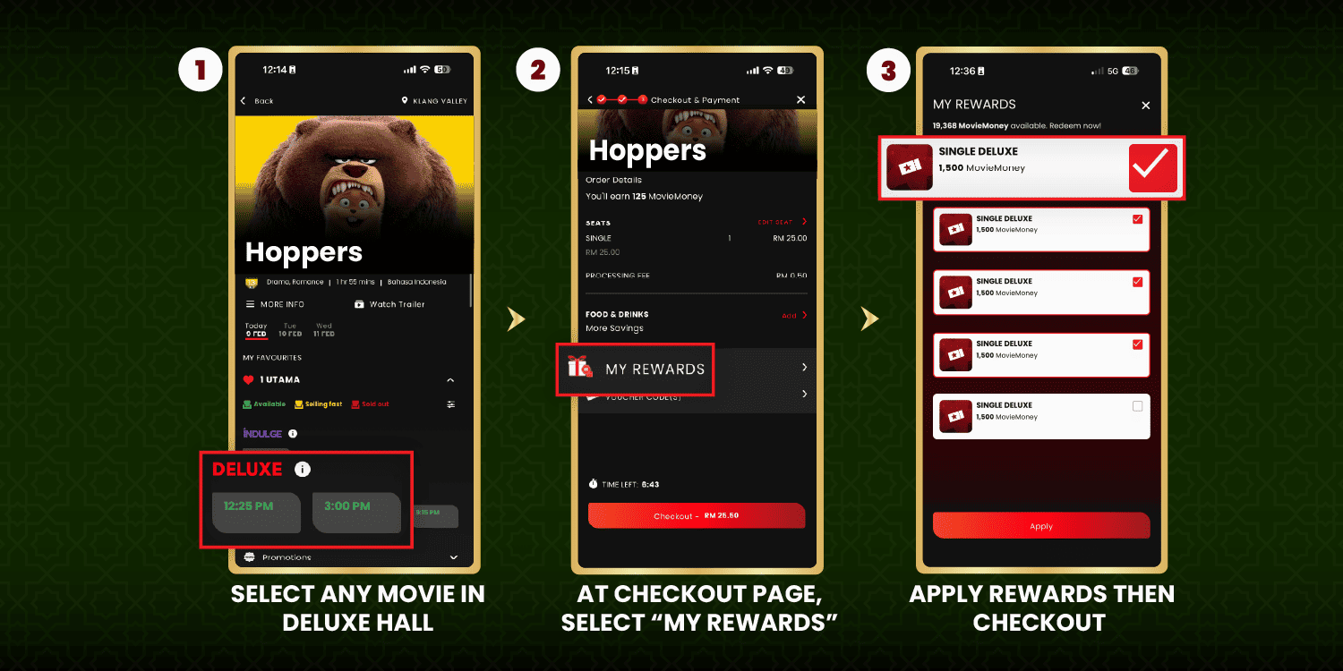 All rewards will be credited directly to the member’s MovieClub account.